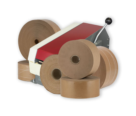 Water-activated tapes are available, and machines are required to activate the adhesive. They are quick and simply to use. They are quiet too. There are standard, semi-re-enforced and fully re-enforced tape options too. All will bond with the Cardboard Box, and all are fully recyclable.