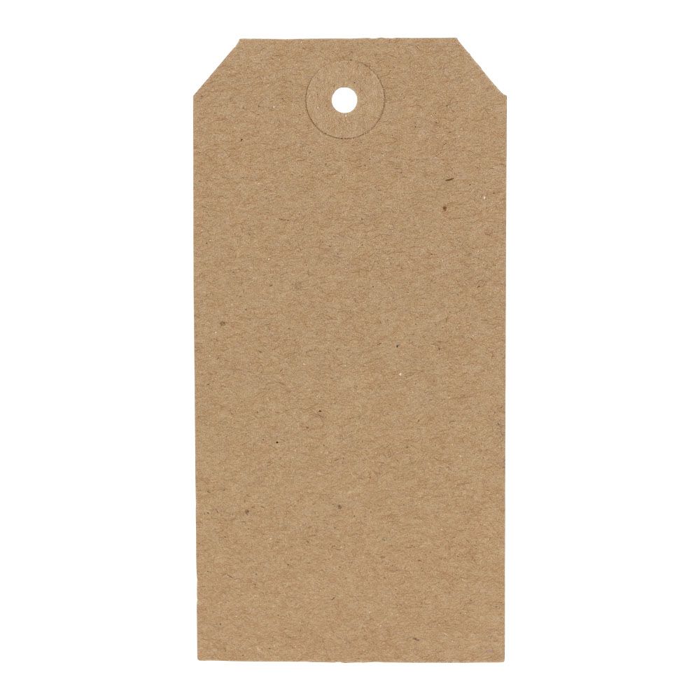 All tags have washers to increase strength. Without string. Size: 120x60mm. Buff. Boxed 1000 tags.