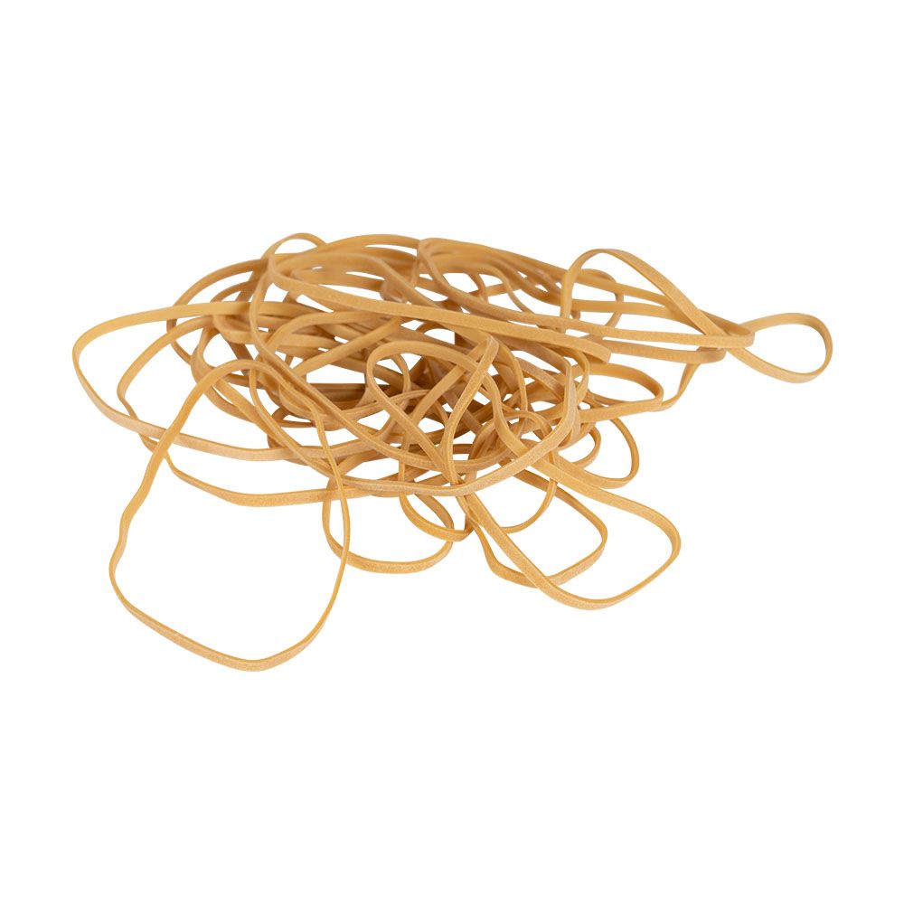 Our rubber bands are sold in industry-standard sizes, made of natural rubber, natural in colour.