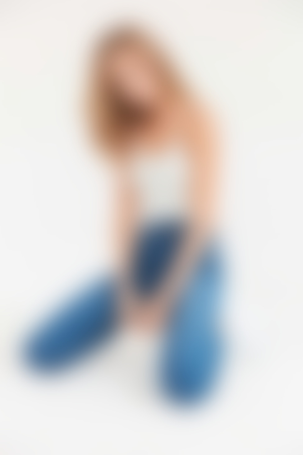 Premium high-waist straight jean cut in a classic slouchy 'mom' fit