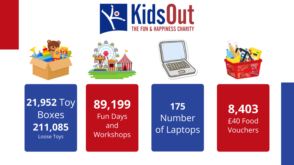 KidsOut is an amazing charity who are dedicated to supporting some of the UK’s most disadvantaged and vulnerable children with positive and happy experiences. Every year, KidsOut make more than 20,000 children smile, by offering experiences, books, toys and stationery to children who may otherwise have none.